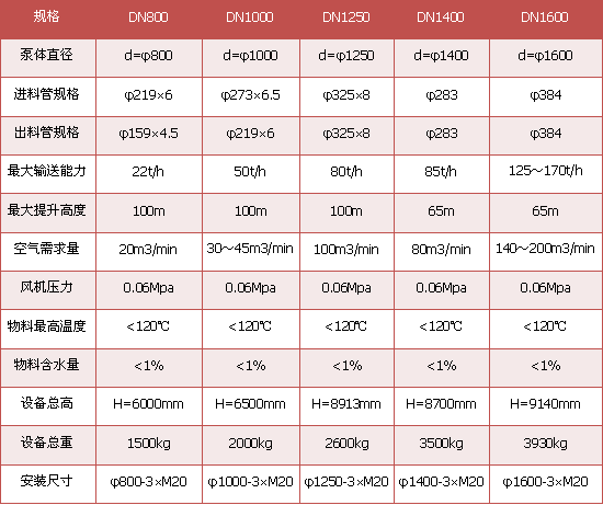 气力提升泵技术参数
