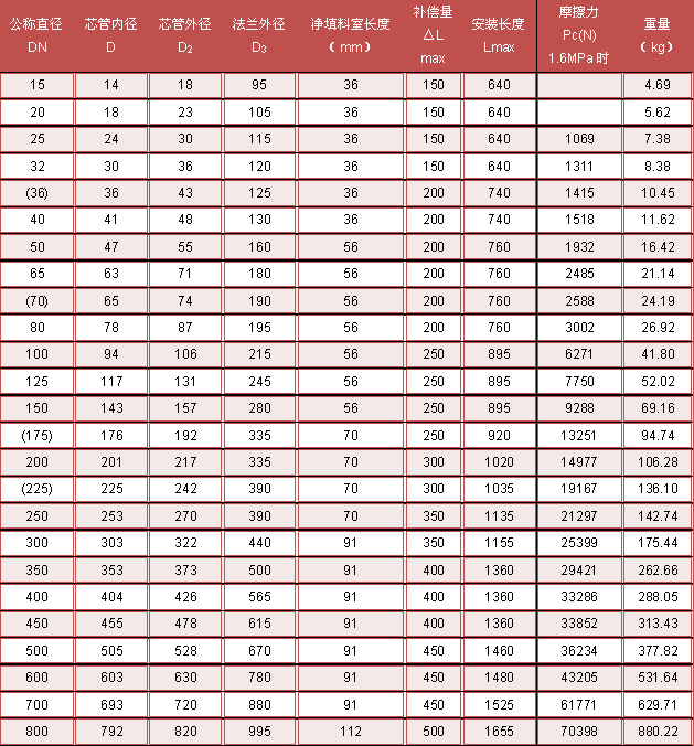 4、其它型式补偿器由于补偿能力小,布置点多,*性能差,维修不方便,尤其使用在城市地下管网,危险性大,实践证明,选择恒力套筒补偿器可以长距离铺设管网(1000mm内无需设补偿器),补偿器使用数量及维修很少,管道泄漏点很少,流体阻力降低、压损降低,运行成本降低,工程造价可降低20%~30%。