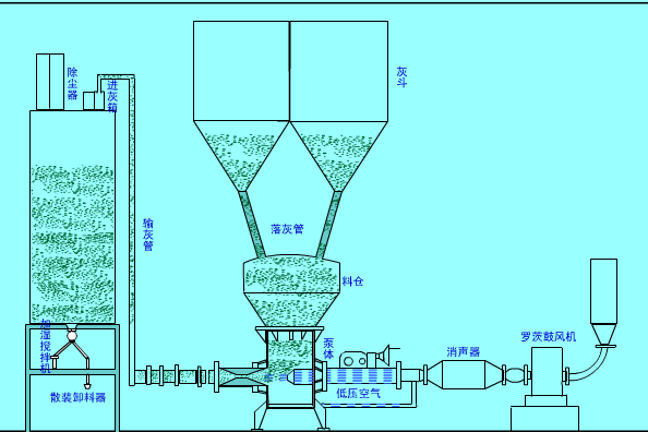气力输送设备结构简单,操作量少,属于连续不断送灰,泵自身能够自动调整出力,来达到送灰的效果。送灰媒介压力低,设备管道阀门不宜磨损。